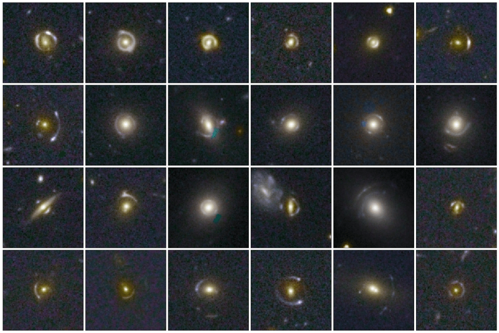 We wanted to share some of the exciting strong lens candidates that we have found so far in the last search in a small test area of Euclid data. Thanks to the incredible half-a-million classifications you made, we’ve identified over 500 high-probability strong lens candidates. A selection of our favourites are below. As you can see, there are a wide variety of configurations and galaxy types, including edge-on spiral galaxies and some redder lensed systems which may be more distant or dustier than usual.